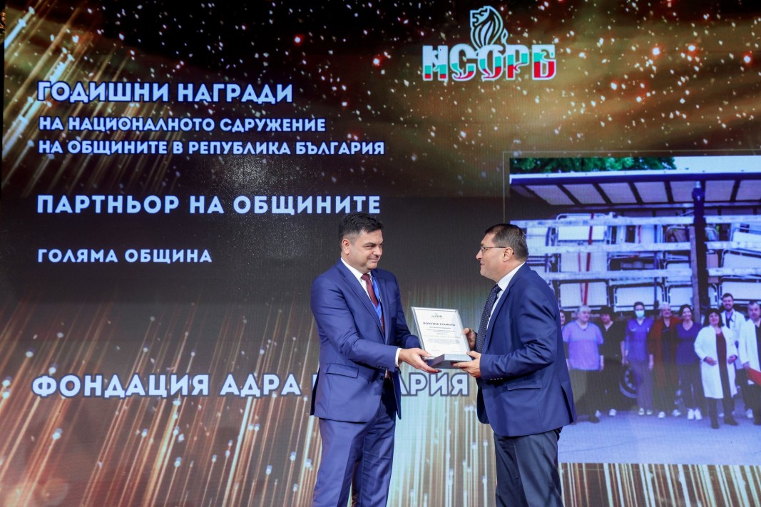 Фондация "Адра България" е отличена с приза "Партньор на общините за 2025 година", а Димитров определи признанието като "мотивираща отговорност".