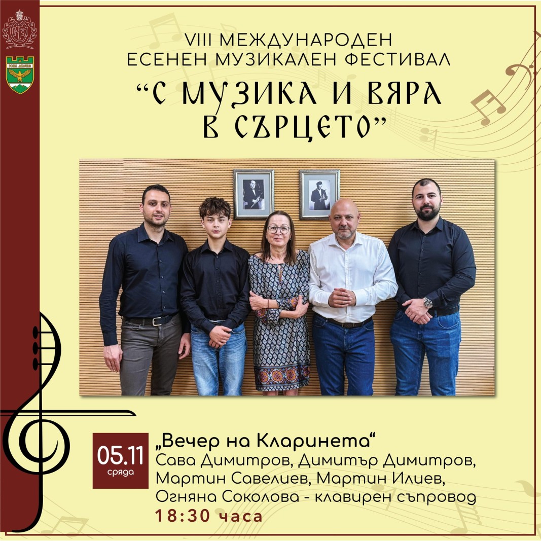 На 5 ноември в Гоце Делчев ще се състои "Вечер на кларинета" в Неврокопската света митрополия. Концертът е в рамките на 8-ия Международен есенен музикален фестивал "С музика и вяра в сърцето".