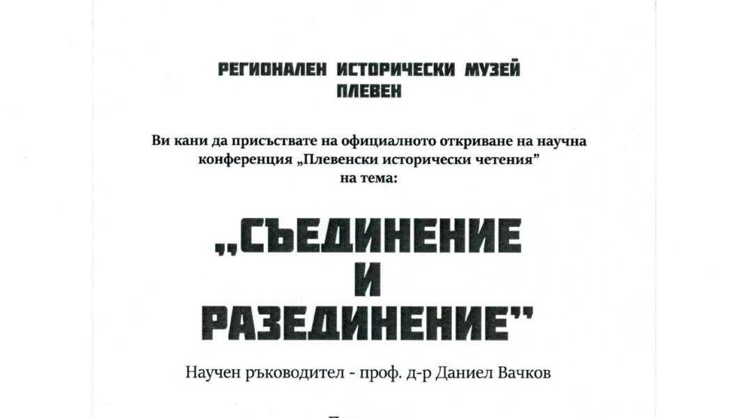 Регионалният исторически музей в Плевен е домакин на национална научна конференция "Плевенски исторически четения". Темата тази година е "Съединение и разединение",