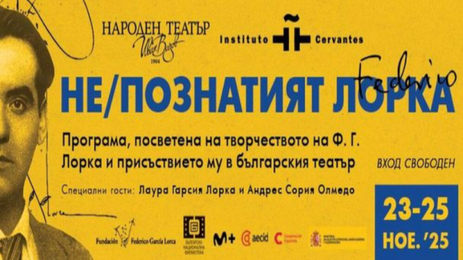 Племенницата на един от най-известните испански поети и драматурзи Федерѝко Гарсѝя Ло̀рка – Лаура Гарсия Лорка, идва в България. Тя ще е у нас по покана на Народния театър "Иван Вазов" и Института "Сервантес". В рамките на специална тридневна програма публиката ще има възможност да се докосне до света на един от най-обичаните испански автори на 20 век – през разговори, прожекция и изложба, посветени на неговия живот, творчество и наследство.