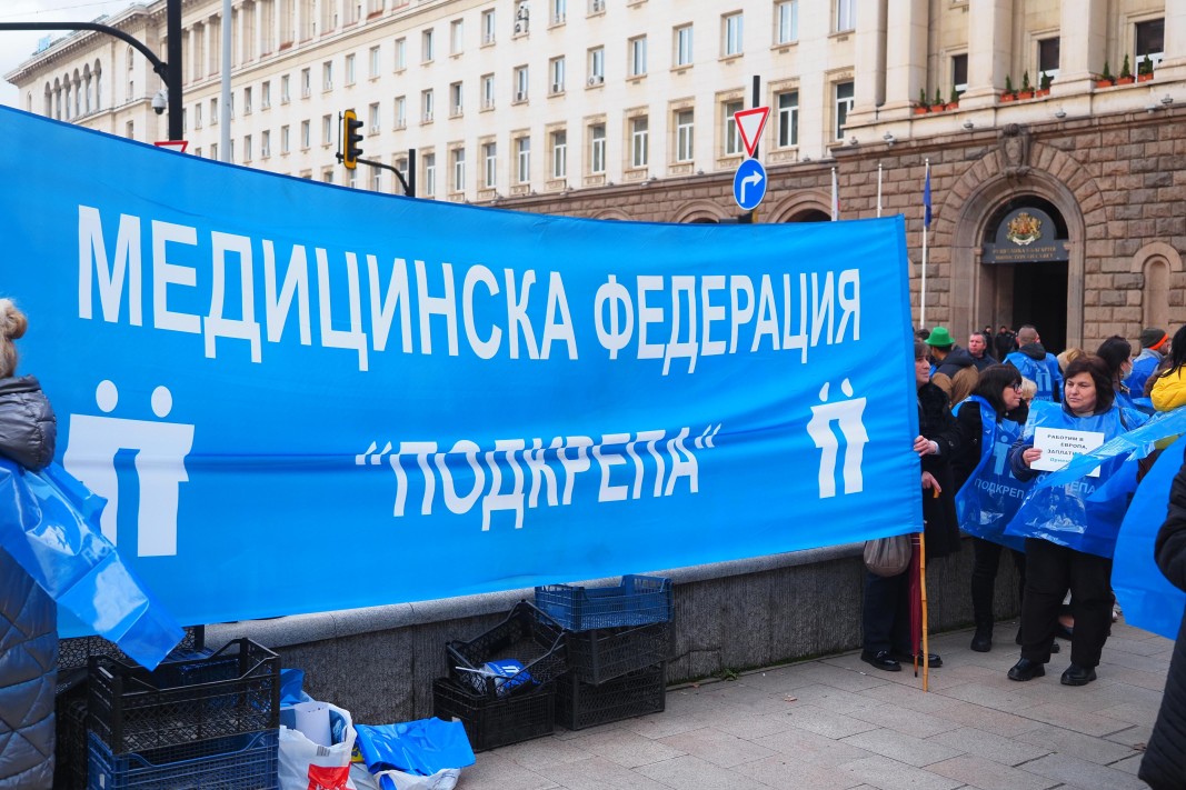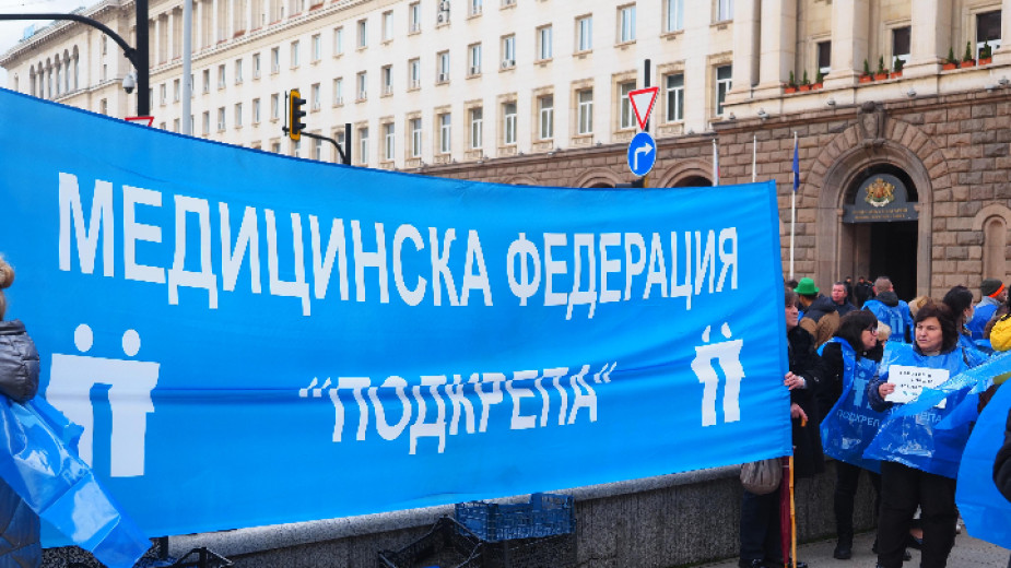 Пред Народното събрание започна протестът на медицинската федерация към КТ "Подкрепа", откъдето ще изразят недоволство от липсата на политика по доходите на заетите в здравеопазването.