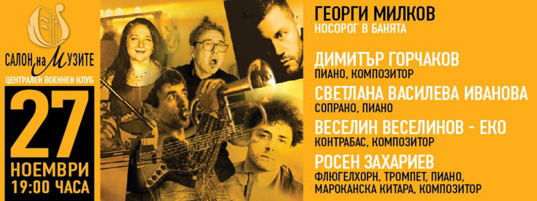 Георги Милков ще представи новата си книга "Носорог в банята", а Росен Захариев ще се изяви като мултиинструменталист с изпълненията си на флюгелхорн, тромпет, пиано и мароканска китара.