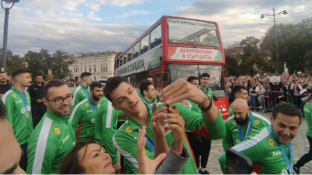 След официалното посрещане на летище "Васил Левски" тази сутрин, волейболните национали на България - вицешампиони от Световното първенство във..