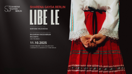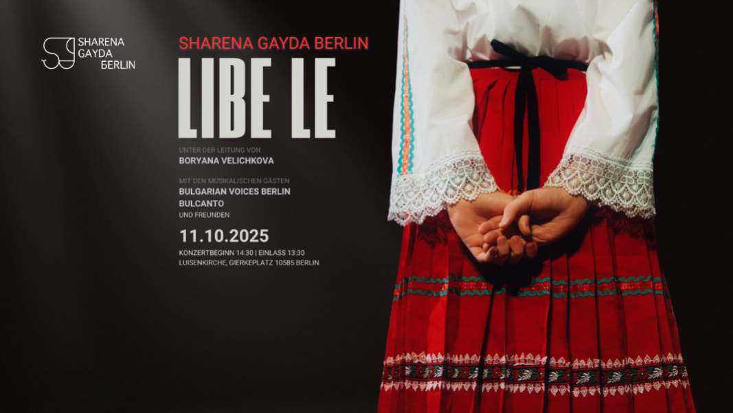 Ако предпочитате да бъдете в движение, подвластни на българските ритми, БКИ-Берлин има две предложения и за вас. Първото е на 11 октомври от 14.30 часа месно време в църквата "Luisenkirche" в германската столица, където ще се проведе празничният концерт "Либе ле" (Libe le) по повод десет години от основаването на българския детски хор "Шарена гайда". Създаден през 2015 година от диригентката Боряна Величкова, репертоарът на формацията включва произведения от различни музикални жанрове – от български фолклор, до рок и поп музика.