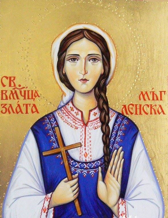 Света великомъченица Злата Мъгленска е родена и живяла в българското село Слатино, Мъгленска епархия (+ 1795), по време на турското владичество.