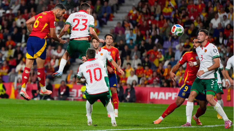 България загуби с 0:4 от европейския шампион по футбол Испания в среща от Световната квалификация в група "Е".