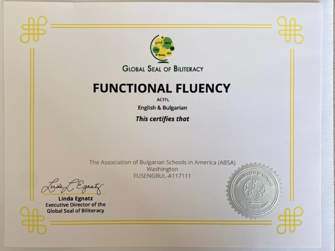 – Тестът по български език, предложен от департамента, впоследствие е одобрен от борда по образование на щата и през 2017 г. Министерството на образованието и науката подкрепя утвърждаването му като валидиращ знанията в Съединените щати. Сключената спогодба утвърждава правото на Департамента за езиково обучение да оценява владеенето на български език на живеещите зад граница ученици и студенти. Дава се възможност и всяко българско училище зад граница да се превърне в своеобразен изпитен център по български език."
