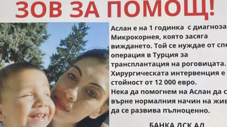 Аслан Бюржен Бюрхан , който е само на година и четири месеца се нуждае от спешна операция за спасяване на зрението. Диагнозата на момченцето от Кубрат е микрокорнея- състояние, което сериозно засяга зрението. За да може детето да живее нормален живот, да се развива пълноценно и да вижда света около себе си, е необходима спешна трансплантация на..