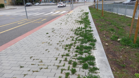 Не само разбитите или липсващи плочки са проблем на тротоарите в Шумен. На един от последно направените обекти в града – зоната около и срещу спортната зала „Арена Шумен“ измежду тротоарните плочки редовно избуява трева. Бързото й израстване превръща пешеходната зона в тревна площ. Премахването става ръчно, тъй като има забрана за третирането й с..