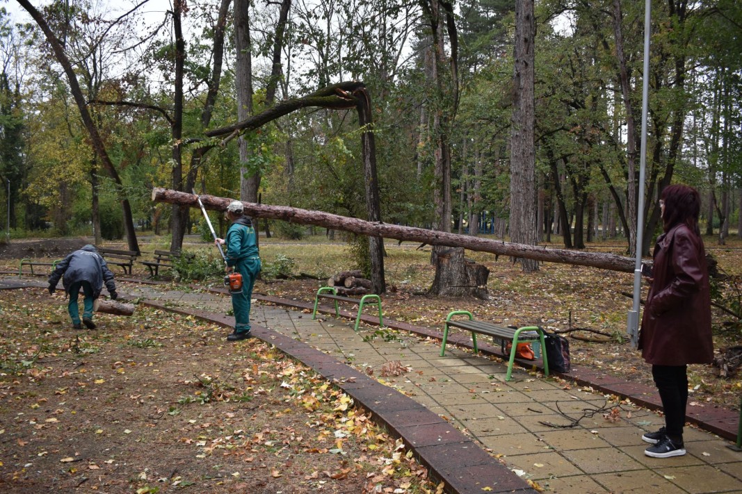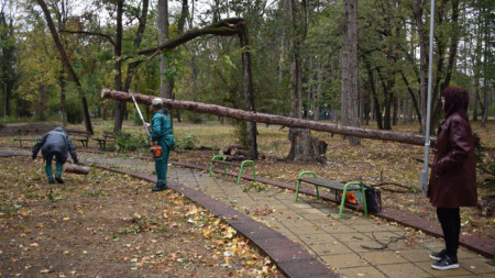 В отделни райони на Разград има паднали дървета и клони, които своевременно се отстраняват от работници от Общинското предприятие „Паркстрой“. Те реагират на сигнали на граждани и извършват огледи край учебни заведения и автобусни спирки.