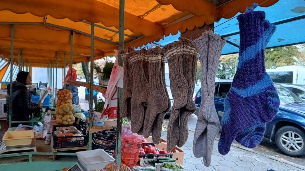 Тази година, сякаш сме без същинска есен и след лятото последва зима, дори сняг падна на места. Затова чифтове топли чорапи вече красят сергията на Дидка. Полюшват се сред чушки, жълти тикви, сочни ябълки и всякакви витаминозни вкусотии.