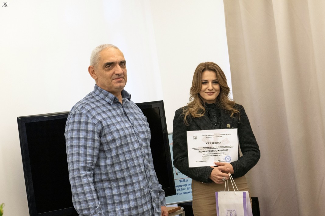 Даяна Кючукова получи грамота и парична премия, връчени от сина на проф. Рашев - Васил Рашев.