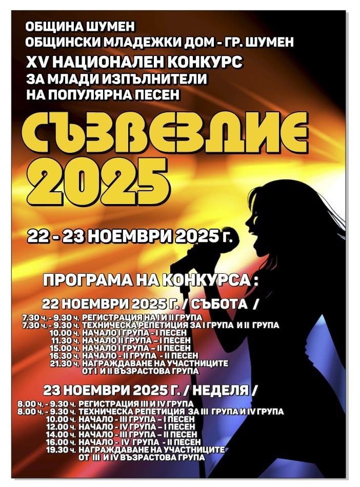 В Шумен продължава XV издание на Националния конкурс за млади изпълнители на популярна песен "Съзвездие" 2025.