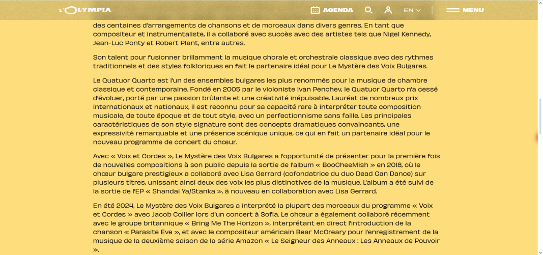 "Написах случайно нашето име в търсачката и ИИ ми съобщи, че сме имали концерт в Олимпия - вече всички ни свързват с тази зала, където са свирили Бийтълс и Силви Вартан. Това е възможно най-престижната зала, но персонала не си спомняше някога струнен квартет да е свирил там, това ни кара да се усмихваме и да продължаваме напред.