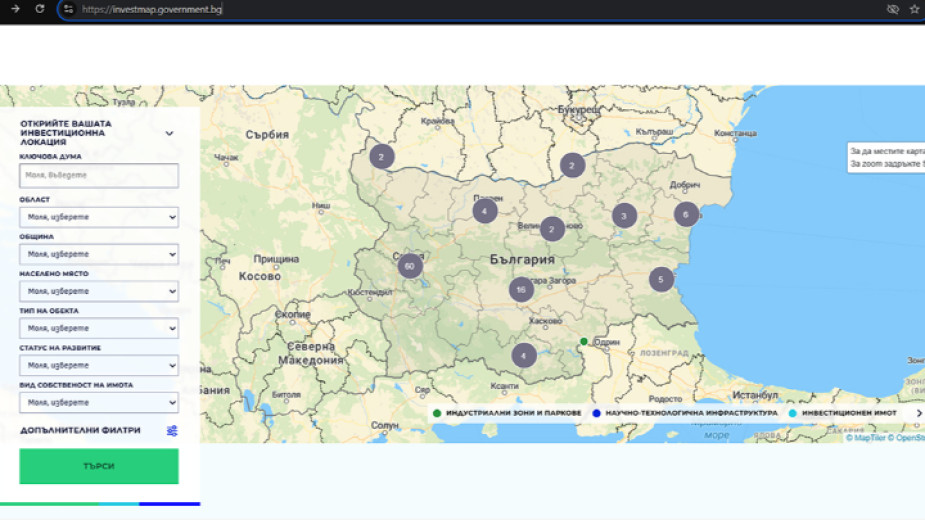 Министарство за иновације и раст представило је прву интерактивну инвестициону мапу Бугарске. Циљ платформе је да на једном месту бугарским и страним инвеститорима пружа корисне и актуелне информације како би им олакшала доношење инвестиционих одлука.