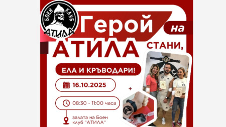 Инициатива на боен клуб „Атила“ – Стара Загора за кръводаряване ще се проведе на 16 октомври (четвъртък) от 8:30 до 11:30 часа в залата на клуба и е отворена за всички желаещи да помогнат. Кръводарителската кампания е част от постоянната..