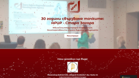 30-годишнината от създаването на Агенцията за регионално икономическо развитие (АРИР) в Стара Загора ще бъде отбелязана с юбилейна международна конференция под наслов „Заинтересованите страни в диалог за бъдещето“. Водещ на форума ще бъде д-р Румяна Грозева, изпълнителен директор на АРИР. Събитието ще се проведе на 15 октомври в конферентната зала на Регионалната библиотека „Захарий Княжески“.