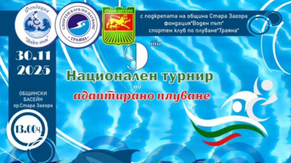Стара Загора ще посрещне над 100 участници от цялата страна в рамките на IX Национален турнир по адаптирано плуване за деца със специални потребности. Събитието ще се проведе на 30 ноември 2025 г. (неделя) от 13.00 ч. в общинския плувен басейн на ул. „Граф Игнатиев" №13.