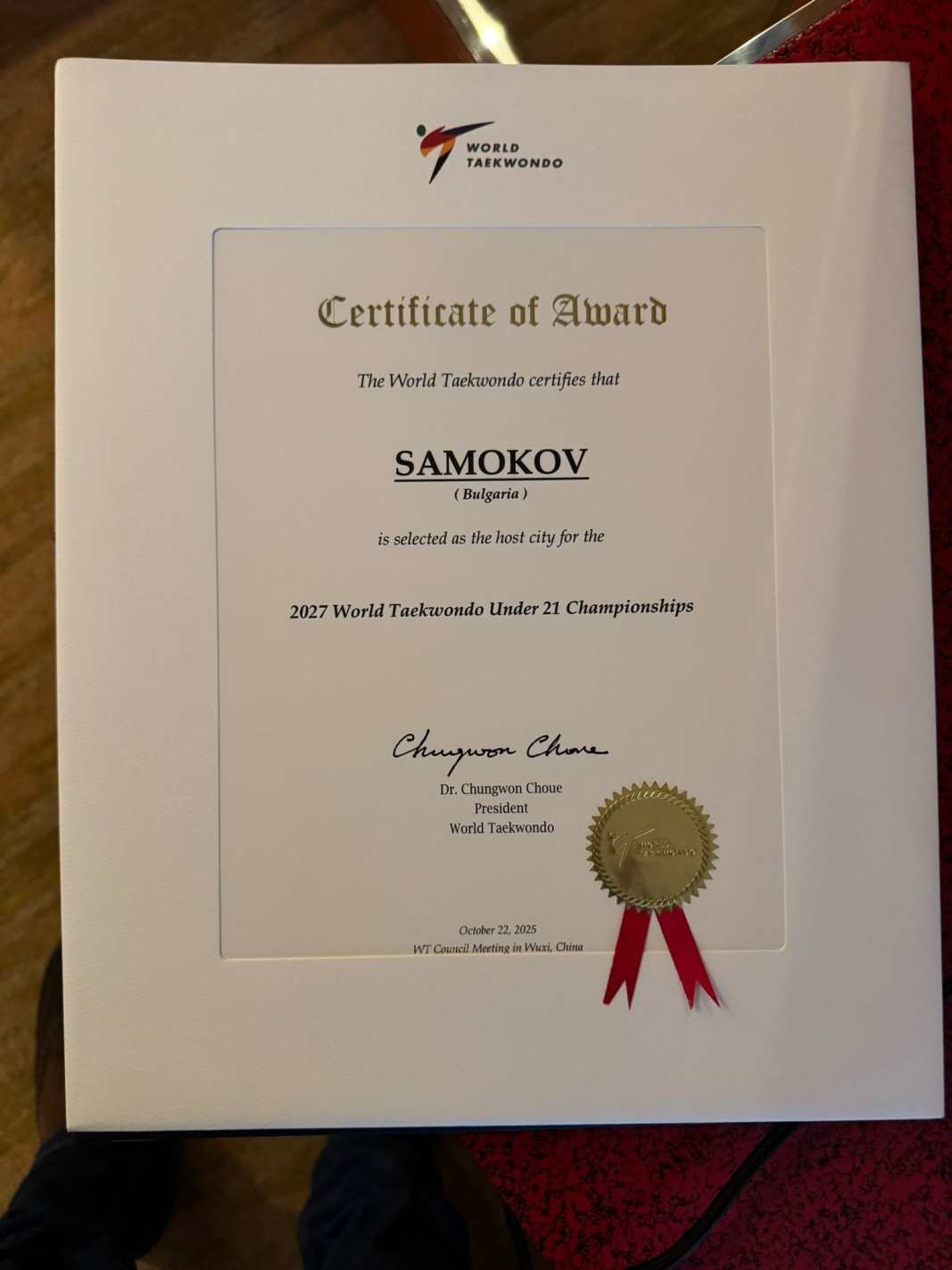 Bulgaristan Tekvando Federasyonu’nun bildirdiği üzere, Çin’de düzenlenen Dünya Tekvando Federasyonu toplantısının ardından, Bulgaristan’ın, 21 yaş altı gençler için 2027 Dünya Gençler Tekvando Şampiyonası’na ev sahipliği yapma hakkını kazandığı duyuruldu.