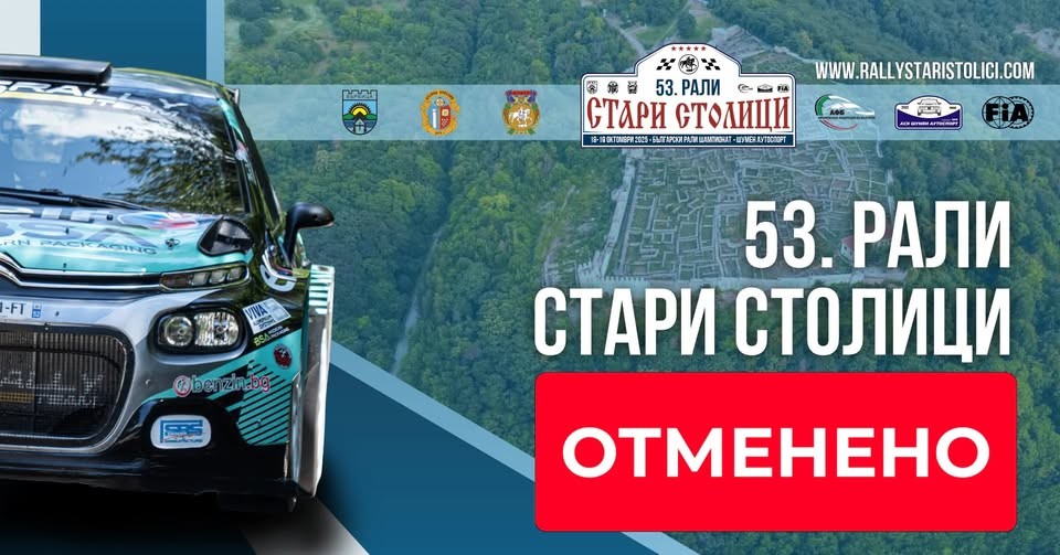 53-то рали „Стари столици“ няма да се проведе, обявиха организаторите. Решението е взето след внимателна оценка на всички фактори, свързани с безопасността и нормативните изисквания за провеждане на автомобилни състезания. Съгласно изискванията на Автомобилна федерация на България (АФБ) и действащия Национален спортен кодекс, провеждането на състезание без осигурена радиовръзка и задължителна застраховка е недопустимо. За съжаление, обстоятелства, независещи от организатора, доведоха до невъзможност да бъдат изпълнени тези ключови условия, изисквани по правилник за подобен тип мероприятия.