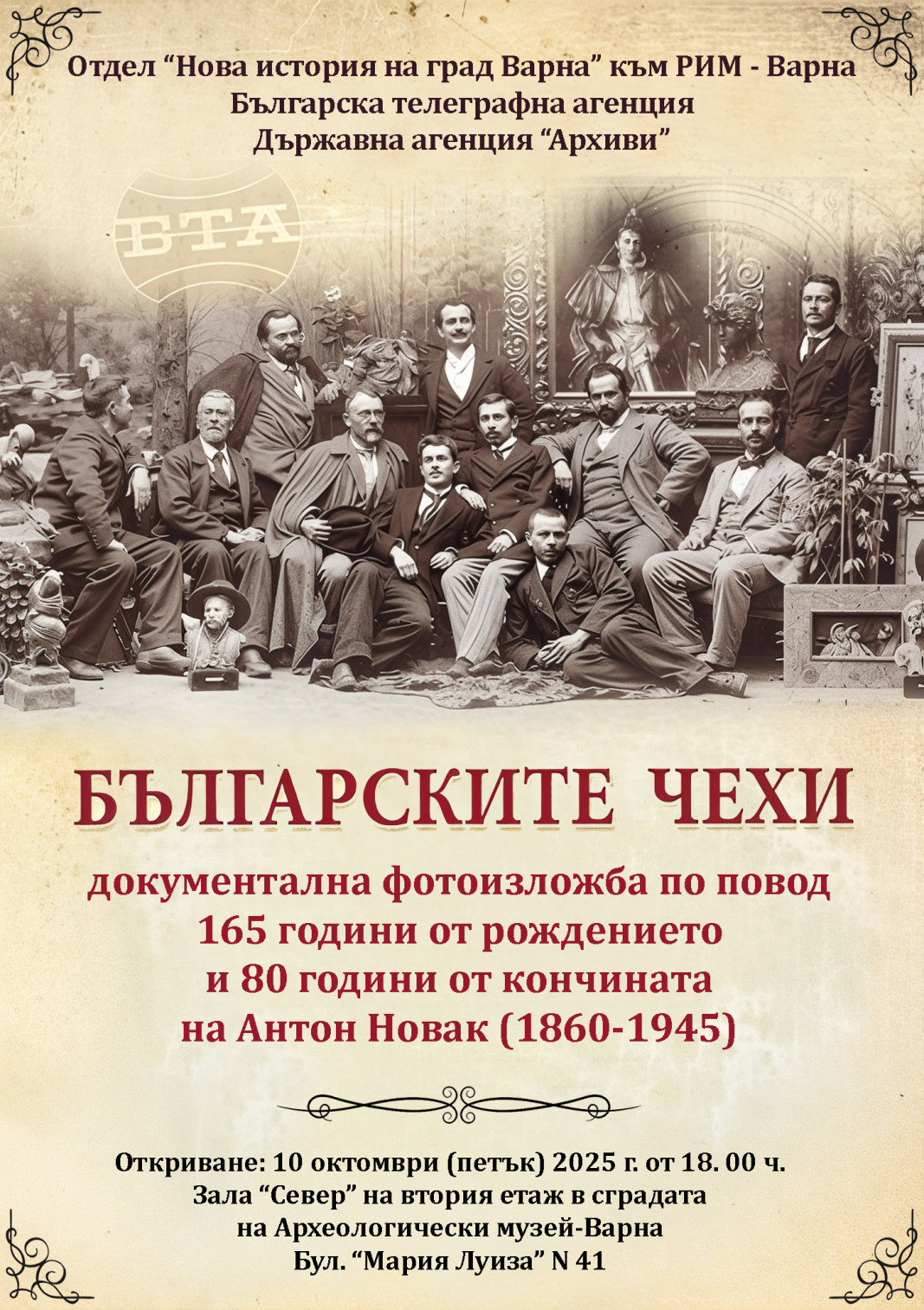 Тази година Варна отбелязва 165 години от рождението, 130 години от установяването му в града и 80 години от кончината на Антонин (Антон) Ян Новак. Той е създателят на зелената корона на Варна – нейната приморска градина. Антон Новак е член на многобройното семейство чешки интелектуалци и предприемачи, оставили трайни и ярки следи във всички аспекти на културния, обществения и стопанския живот на младата българска държава, непосредствено след нейното възстановяване в края на XIX в. Поради тази причина тройният юбилей на Антон Новак ще бъде отбелязан с представянето на документалната фотоизложба "Българските чехи".