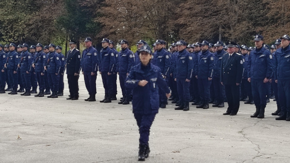 153-ма стажанти в Областните дирекции на МВР от пет области в страната, завършили Центъра за специализация и професионална подготовка към МВР във Варна, положиха клетва и встъпиха в младша изпълнителска длъжност в направления "младши полицейски инспектори", "младши автоконтрольори " и "охрана на обществения ред".