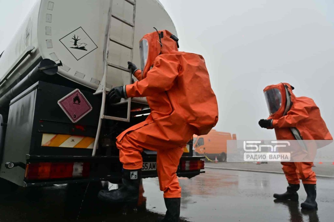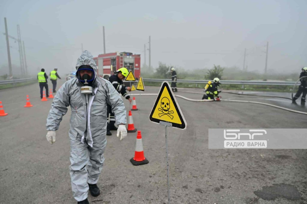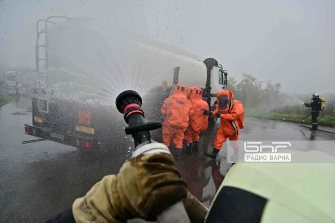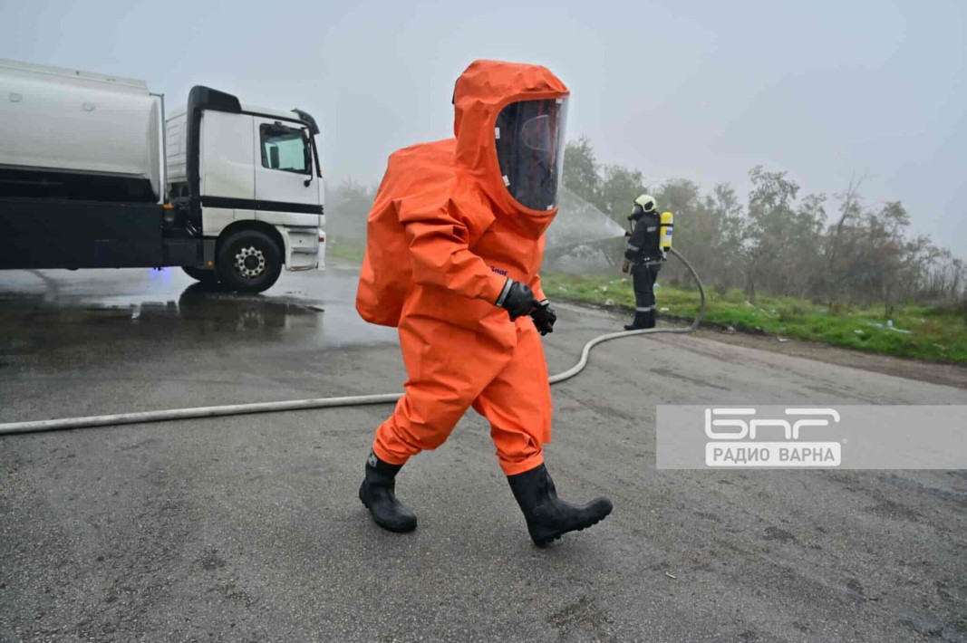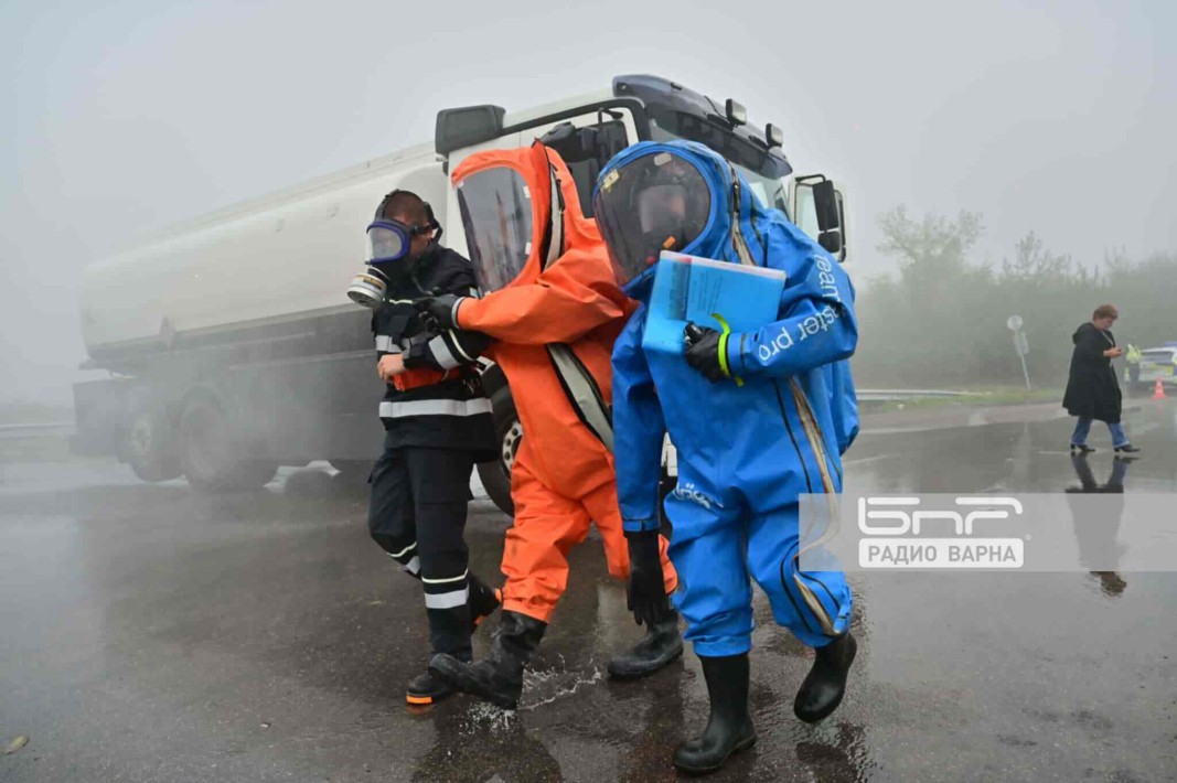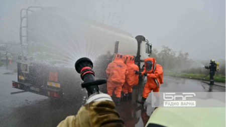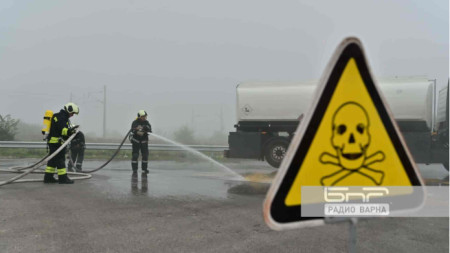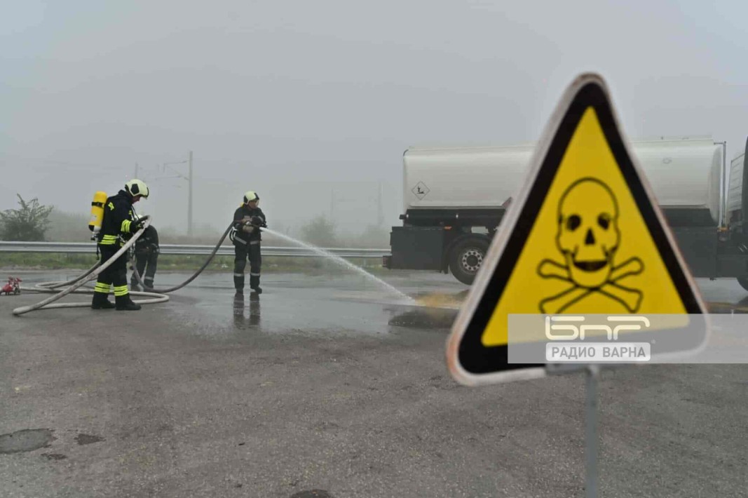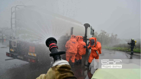 Разлив на сярна киселина от самокатастрофирала цистерна, която превозва 30 тона от химикала, овладяха по време на учение във Варна. По сценарий при инцидента изтича близо тон сярана киселина, а шофьорът остава заклещен в кабината на камиона. Това обясни директорът на Регионалната дирекция "Пожарна безопасност и защита на населението" старши комисар Стоян Стоянов.