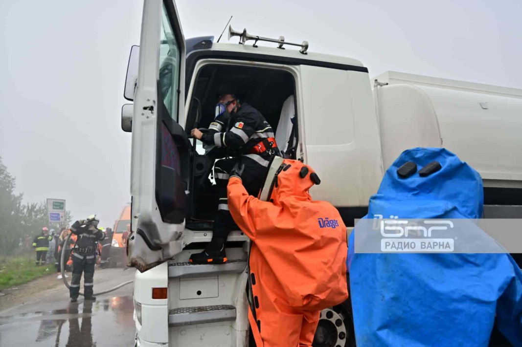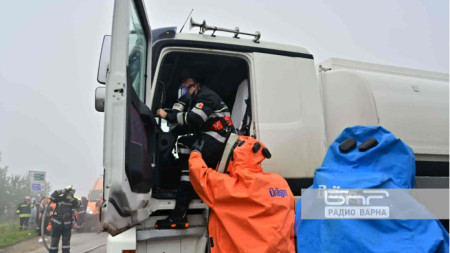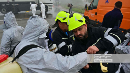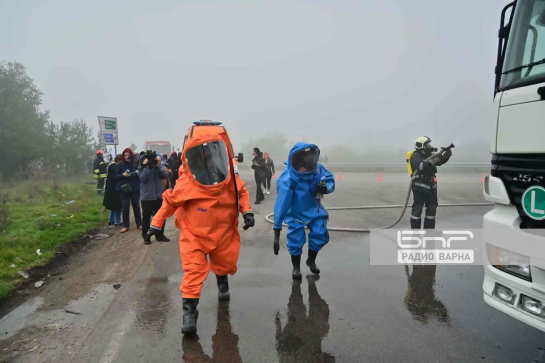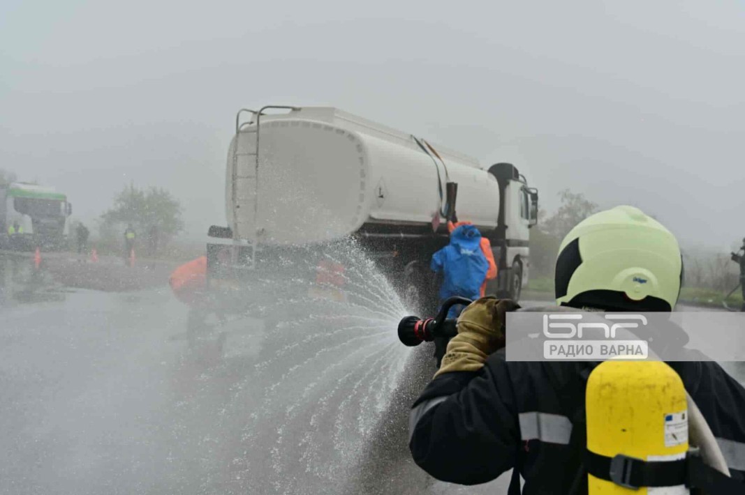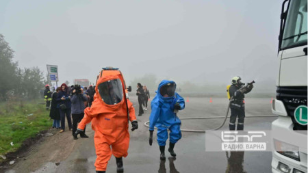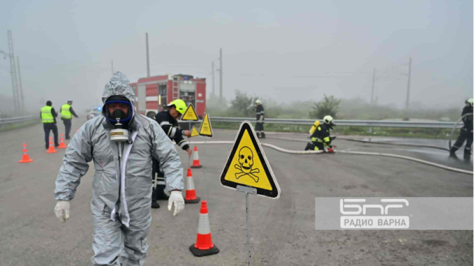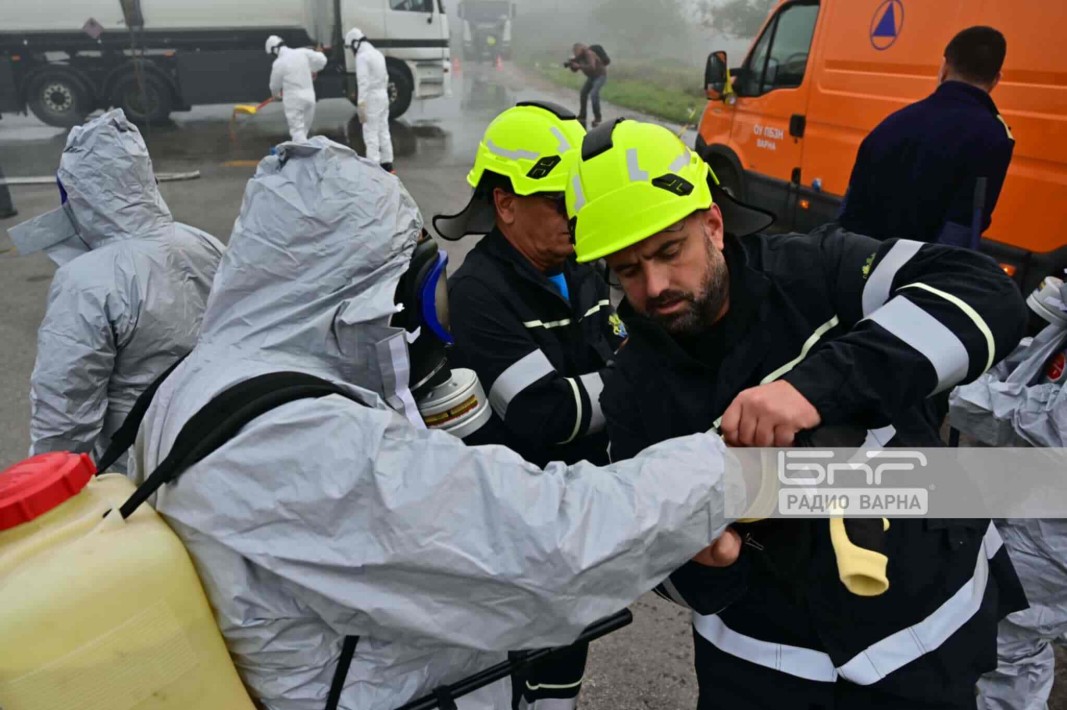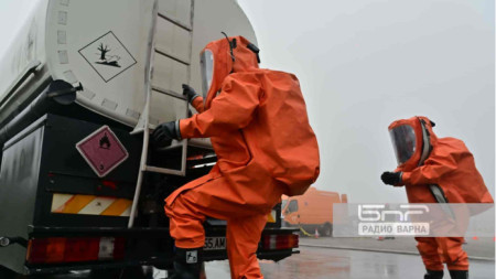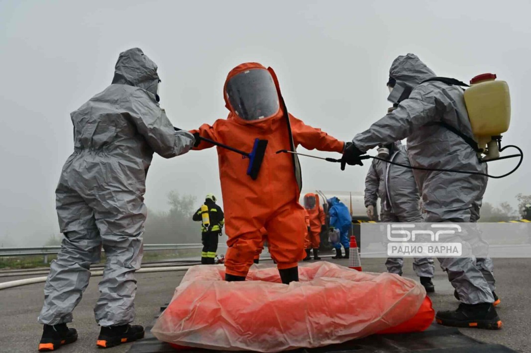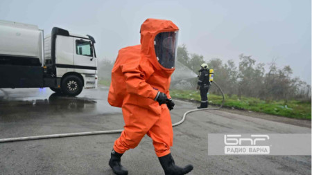 Разлив на сярна киселина от самокатастрофирала цистерна, която превозва 30 тона от химикала, овладяха по време на учение във Варна. По сценарий при инцидента изтича близо тон сярана киселина, а шофьорът остава заклещен в кабината на камиона. Това обясни директорът на Регионалната дирекция "Пожарна безопасност и защита на населението" старши комисар Стоян Стоянов.