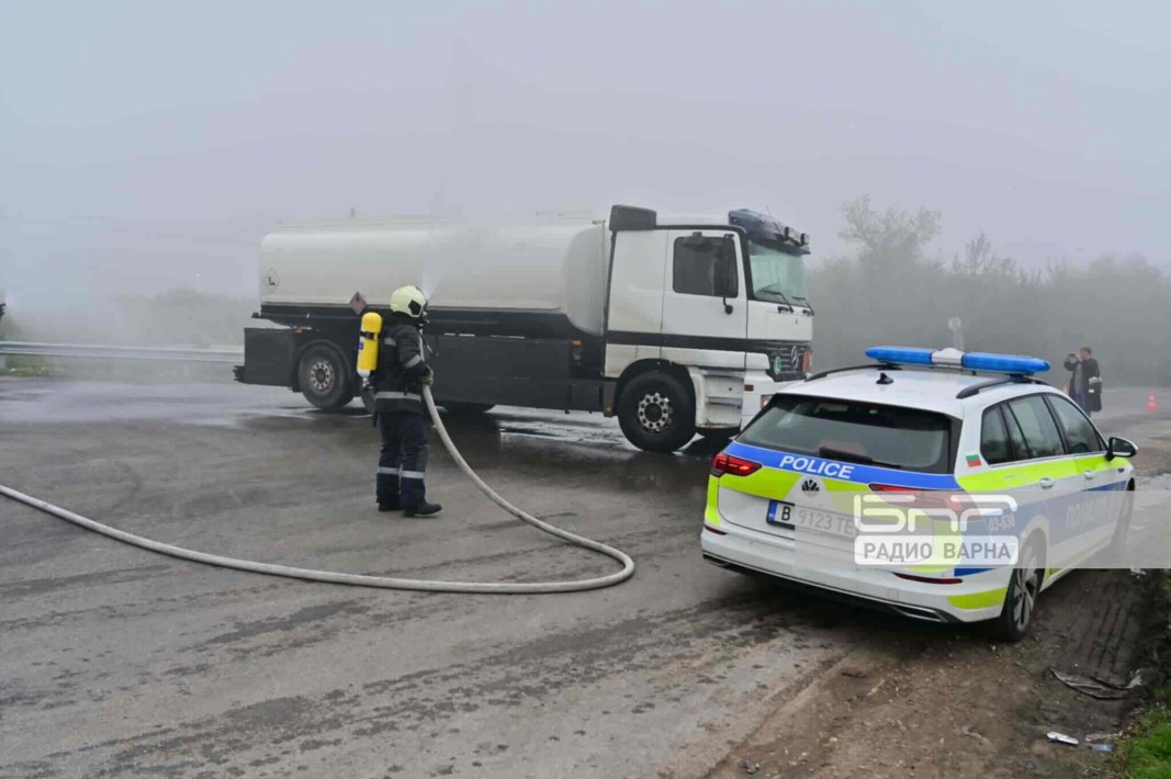 Разливът беше обезопасен и ограничен, а шофьорът беше прегледан и транспортиран до здравно заведение от Центъра за спешна медицинска помощ.