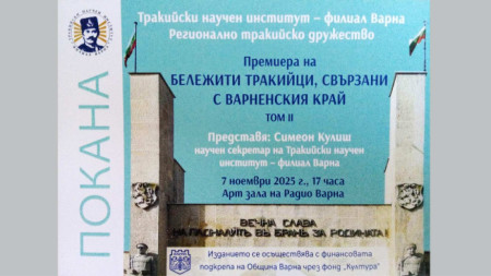 7 ноември, петък, Арт салон на Радио Варна, 17.00 часа Тракийски научен институт - филиал Варна и Регионално тракийско дружество ви канят на представянето на втори том на сборника със статии "Бележите тракийци, свързани с варненския край". Вход свободен.