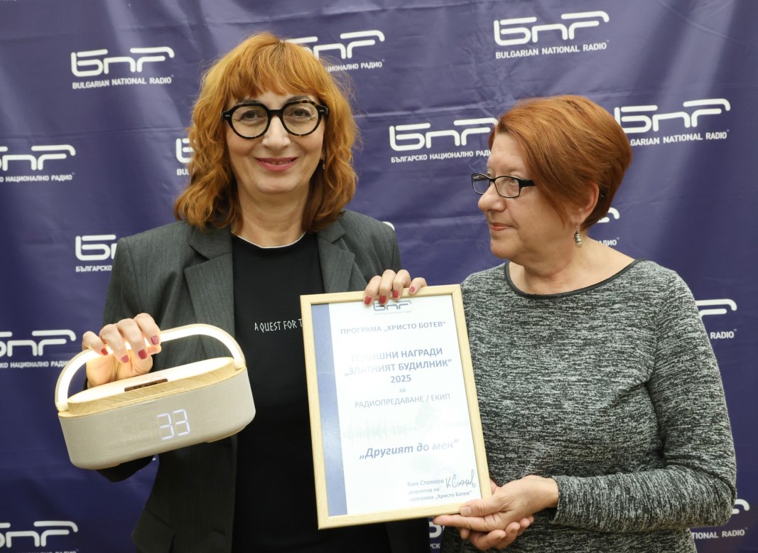 Журналистът и дългогодишен редактор в БНР - Радио Варна Светлана Вълкова получи годишната награда "Златният будилник" 2025 на програма "Христо Ботев". Тя беше отличена за радиопредаването на социална тематика "Другият до мен", което се излъчва всяка събота от 7.30 до 9 часа в ефира на Радио Варна. Светлана Вълкова е сред утвърдените гласове в БНР, позната като автор и водещ на поредица предавания, сред които и "Другият до мен" – формат, който среща слушателите със силни човешки истории, изкуство и социални каузи. През кариерата си Светлана Вълкова тя работи като репортер, новинар, водещ и редактор, публикува и в национални и регионални издания. Тя определя оценката от колеги като "много важен рефлекс" и благодари за признанието, което получава за новото предаване в ефира на програма "Христо Ботев", отстояващо социално значими каузи.