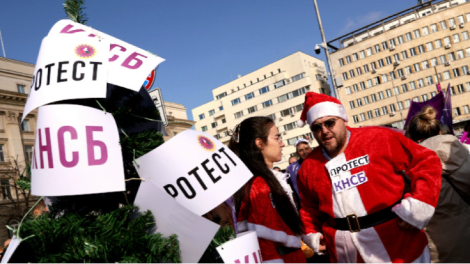 Протестът е организиран като предколедно тържество с елха и подаръци, но не всички от тях са пълни. В него участват Снежанка и Дядо Коледа на фона на лилавите знамена на КНСБ. Много от участниците са дошли от страната, за да се включат в протестното мероприятие.