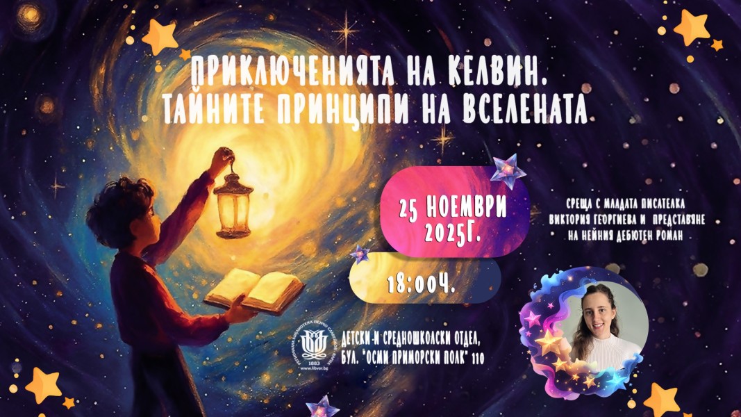 По повод Деня на четенето и паневропейската инициатива Ден на европейските автори, Регионалната библиотека „Пенчо Славейков“ – Варна насочва вниманието към ролята на съвременните български писатели за изграждането на пълноценна културна среда. Сред инициативите е премиерата на дебютния роман „Приключенията на Келвин. Тайните принципи на Вселената”, написан от 23-годишната Виктория Георгиева.