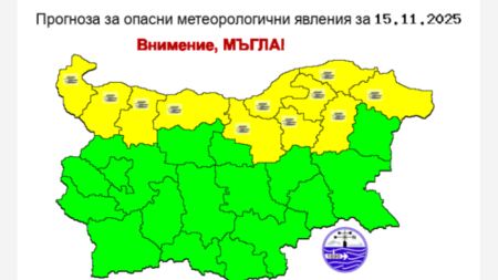 Мъгла ограничава видимостта тази сутрин във Видин. Предупреждение от първа степен - жълт код за мъгла, е обявен за днес, 15 ноември, за Видин, Враца, Монтана и още 8 области в Северна България. Видимостта ще бъде ограничена до 800 метра, предупреждават от Националния институт по метеорология и хидрология. Днес не се очаква промяна в синоптичната..