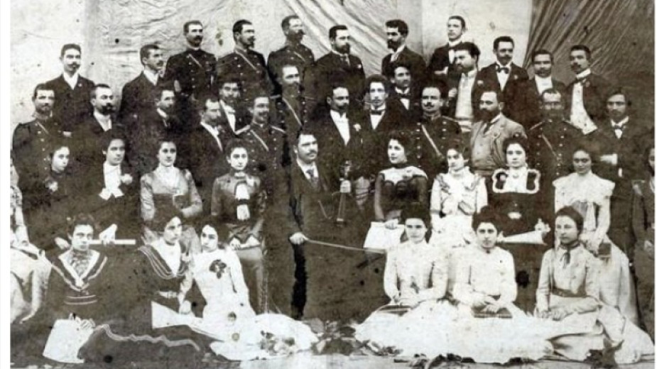 Първият в България смесен църковен хор, основан от Руси Коджаманов (в средата с цигулката), гр. Видин, 1899 г.