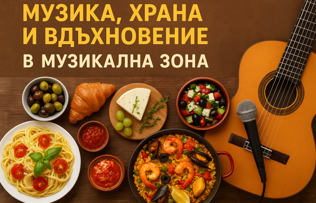 И накрая – България! Страната на топлите традиции и вкусната кухня. Шопска салата, капама, кебапчета и баница са задължителни, а за сладко – тутманик и бисквитена торта. Музиката тук подчертава вкуса на храната и прави приключението завършено и мелодично.