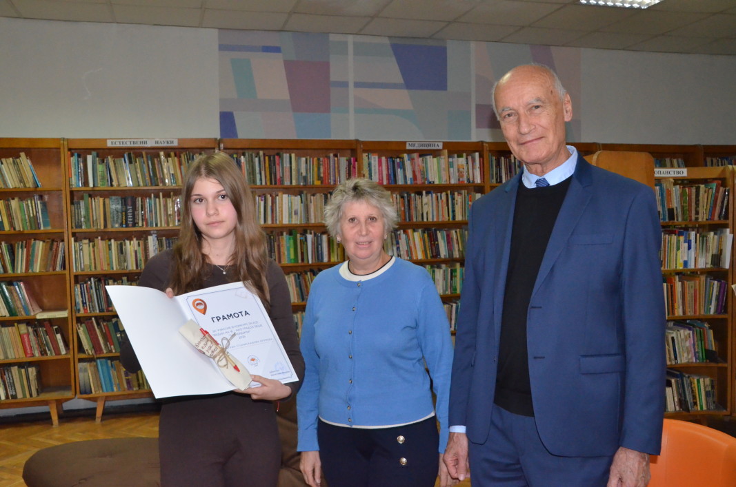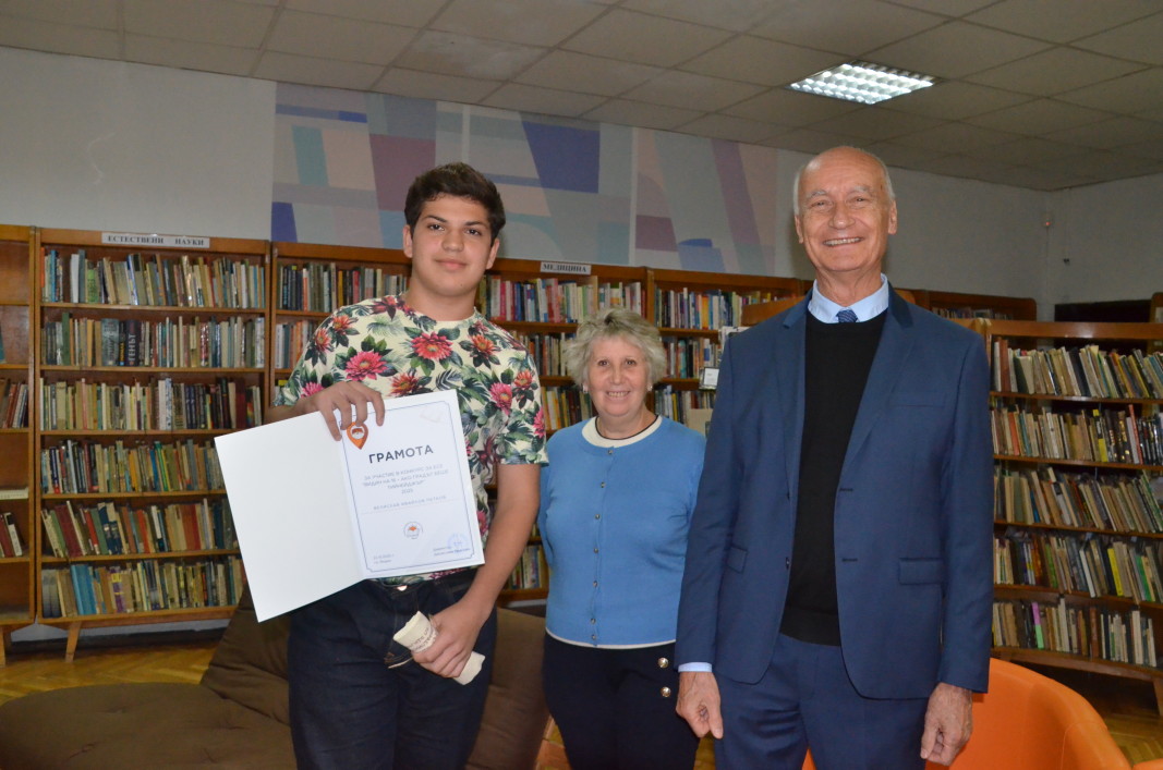 Поощрителната награда отива при Симеон Йорданов, който е написал прекрасно есе, той е от Шумен. "