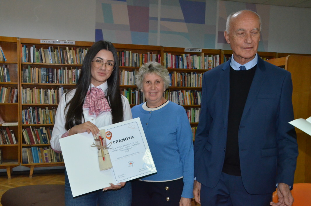 Втората награда е за Симона Тинчова , 11 клас от ГПЧЕ "Йордан Радичков" и третата награда е за Любена Марио Антониева е от Враца.