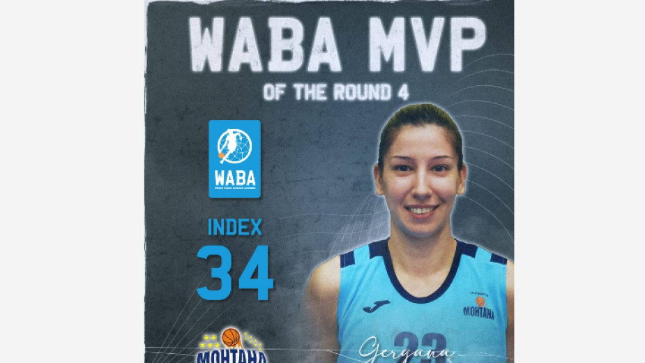 Гергана Иванова от "Монтана" бе определена за най-полезен играч на 4-ия кръг на Адриатическата лига по баскетбол при жените. Иванова отбеляза 31 точки в коша на "Рилски спортист" Самоков. Това е поредното признание за Монтана, тъй като това е втора състезателка с MVP. В първите два кръга призът взе Даниела Уолън. Утре Монтана отново играе с Рилски спортист, но на старта на българското първенство. Срещата в зала "Младост" е от 18 часа.